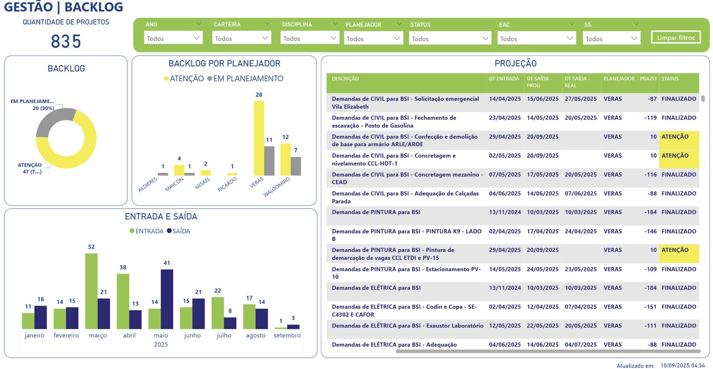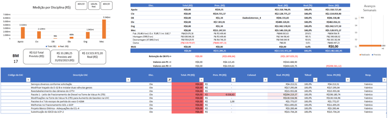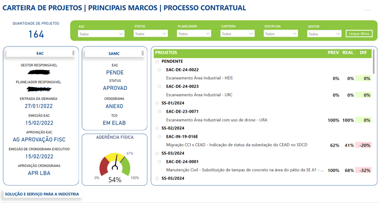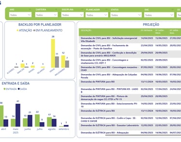 A sugestão foi implementar um painel que ficasse à vista, para que tanto a gerência quanto os responsáveis visualizassem o andamento das obras e gerasse uma otimização no desempenho geral do quadro.