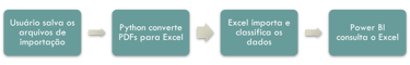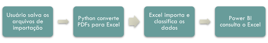 Utilizamos o VBA para automatizar a maior parte dos arquivos em XSLX e CSV, utilizamos o python para extrair os dados de PDF e consolidamos tudo no Power BI para apresentar as informações.
