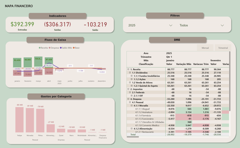 Desenvolvemos uma solução para controle e visualização do fluxo de Caixa que integra os dados bancários extraídos em pdf e em Excel, automatizando o processo desde a coleta até a apresentação visual em Power BI.